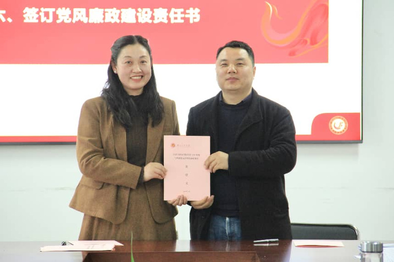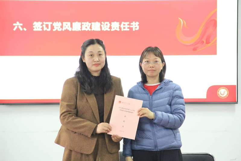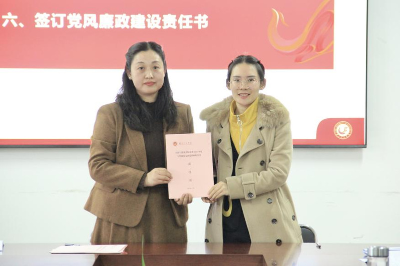审议结束后,会议举行党风廉政建设责任书签订仪式。学院党委书记蒋琼与各系党支部书记依次签订责任书,明确各方在党风廉政建设中的责任分工、工作要求和考核标准,进一步压实全面从严治党主体责任,为学院高质量发展提供坚强纪律保障。